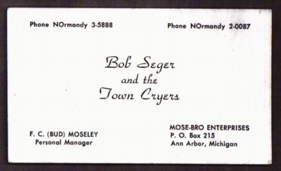 From the collection of longtime Seger fan and photographer Ken Settle.- An early, pre-Punch, business card.