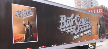 It's possible to get so excited, so tight, so buzzed with excitement that you almost need someone to slap you before you can enjoy yourself. And that was me at 8:40 in the Van Andel. It started with the trucks. The beautiful and huge Face the Promise trucks. Not tucked away in the loading dock but parked out where people couldn't miss 'em, like twin sentinals that said This Is Seger Country. Man, was it ever. We wandered into the box office around 4:00 as vendors were setting up the merch booth. As we were checking out the t-shirts, Alto Reed's muffled saxophone sounded the first plaintive notes of "Turn the Page." By the time Seger began his vocal, I was stunned. We were hearing Seger live! Albeit, very muffled. But the band was in the building, doing the sound check. The excitement just built at the Segernet party across the street. People whose posts I've been reading for years were gathered there. It was like a mini Seger Convention, with two of the three biggest Seger websites represented in one room (Kevin: We missed you!). Segernet founder Eric Verona was celebrating his birthday, and he bought me something that tasted like a beer, and for the first time, we all traded stories without having to hit "Post" or "Send." It was a blast...and then it was time. And what happens is you sit there, waiting for the moment. Waiting for the lights to dim. The PA system played a song that seemed to have "Heavy Music" sampled into it in places, and then Dylan's "Things Have Changed" rang out and it felt like we were getting close. And then Thin Lizzy burst out, and the crowd just took its feet. Someone turned the PA up and Phil Lynott's terrific vocal filled the arena with the absolute perfect intro: "Guess who just got back today? Them wild-eyed boys that been away!" and then Seger was on the stage and the crowd was shouting and shouting and shouting, and from that moment on we never sat down, and we never stopped moving and we never stopped smiling. It was here. Seger! "Roll Me Away" I expected. "Tryin' to Live My Life Without You" surprised me. "Wreck this Heart" may have done damage to my shoulder ligaments because my fist wouldn't stay out of the air. "Mainstreet" slowed it down. And the next song caught me totally by surprise and right between the eyes.