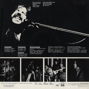 The photo on the back -- Seger at the keyboard, eyes closed, head tipped back -- was taken at the Primo Showbar in Ann Arbor, Michigan in January 1973. Seger was playing "Neon Sky" at the time. I know, because I took the picture. The story of how my photo of Bob got on the back of the album -- and how I tried, twenty years later, to get paid for it -- will have to wait until an update of this page. Being one of the highlights of my life, it takes longer to explain.