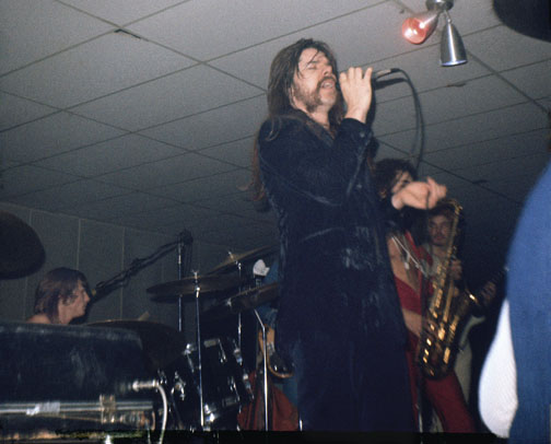 Seger and Silver Bullet Band, December 1973. This shot was taken at Uncle Sam's in Detroit. This is among one of the earliest Silver Bullet Band shows. Charlie Martin had recently joined the band, completing the first Silver Bullet Band line-up. Uncle Sam's was a dingy, dimly lit Detroit Bar in a strip mall. It was located right next to a topless joint. Except for one small follow spot by the mixing board, these ceiling lights were the only lighting -- K.S.