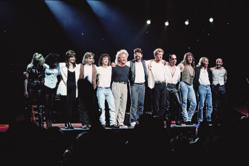 Seger and the Silver Bullet Band, Palace of Auburn Hills, March 1996. The band had just completed their record-setting run of six shows in Detroit and were taking their bows after the final encore of "Rock & Roll Never Forgets." I couldn't help but feel proud of Bob, as I'm sure all of his long-time fans did -- K.S.