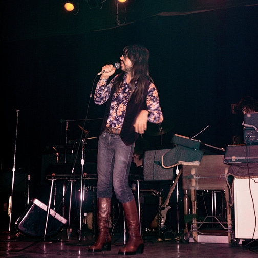 Captain Beefheart opened the show (Bob opened for Beefheart in New York). The large proscenium at the lip of the stage created a huge gulf between the band and audience. Bob apologized for that space at the start of the show, but as the show went on, he really began working the big stage, balancing precariously on the lip of the stage while holding the microphone out to the shouts of the crowd of "Shake, baby, shake" on "Let It Rock" -- K.S.