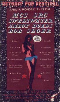 A poster for the Detroit Pop Festival, April 7, 1969, with Bob Seger among the headliners.