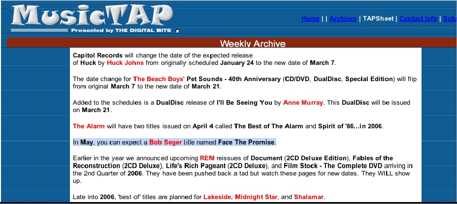 the Seger File Is Here -- Getting Over Bob